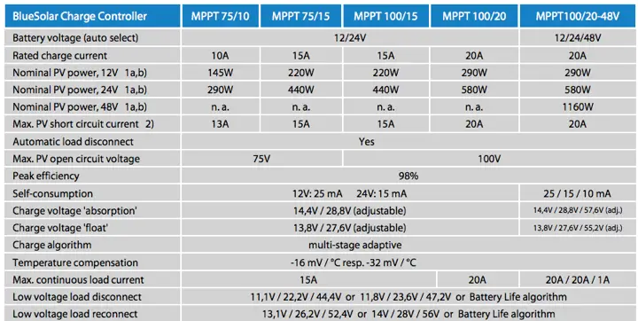 Por ejemplo, los controladores de carga Victron pequeños, tenemos las siguientes opciones: